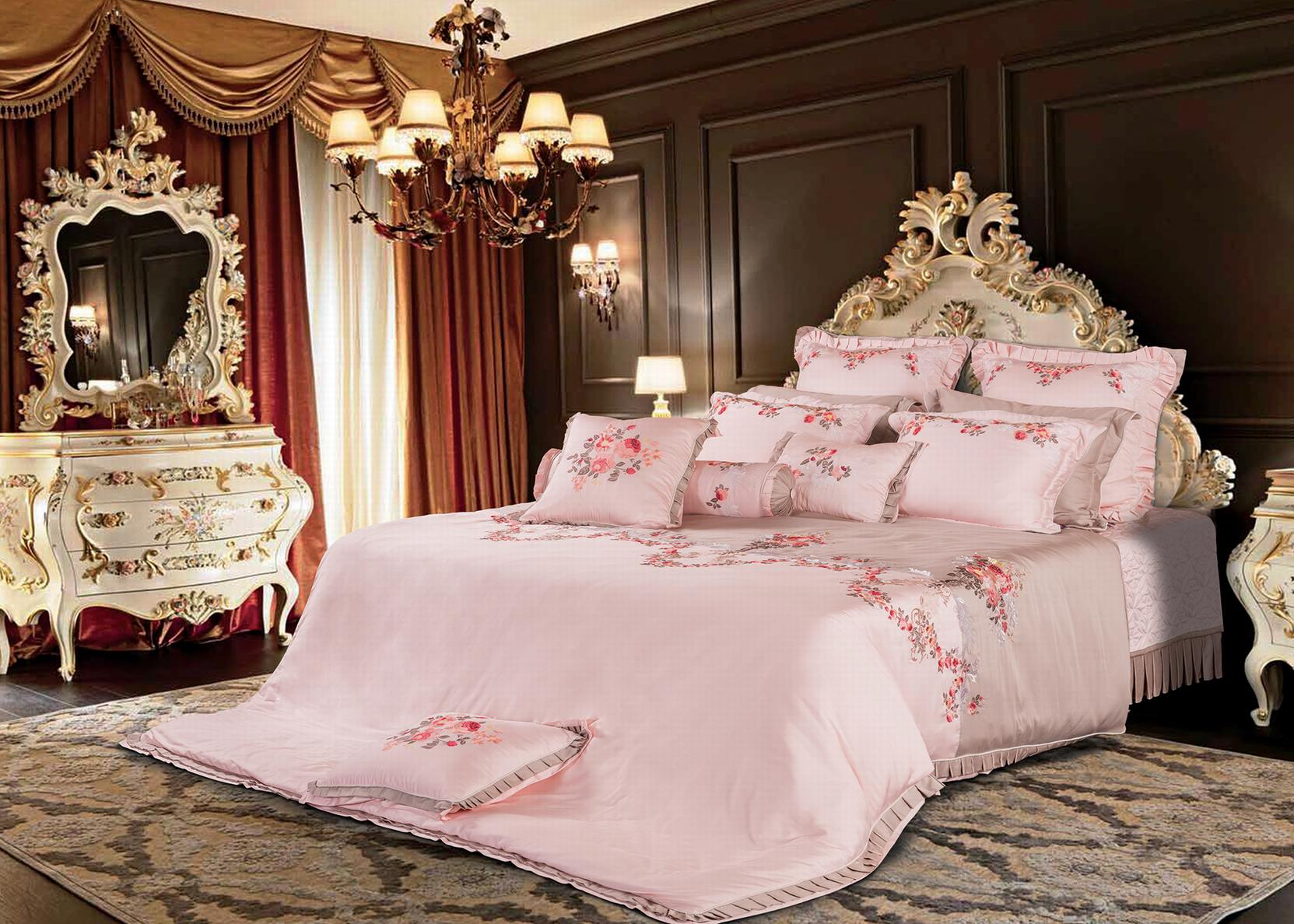 Mô tả: Những bông hoa hồng kết hợp với họa tiết cổ Châu Âu là lối kiến trúc cổ điển, được thêu trên nền vải mầu hồng phấn nhẹ nhàng kết hợp với mầu ghi sang trọng, những đường bèo may tỉ mỉ, bộ chăn ga tạo cho bạn cảm giác như phòng ngủ của một nàng công chúa trong cổ tích.