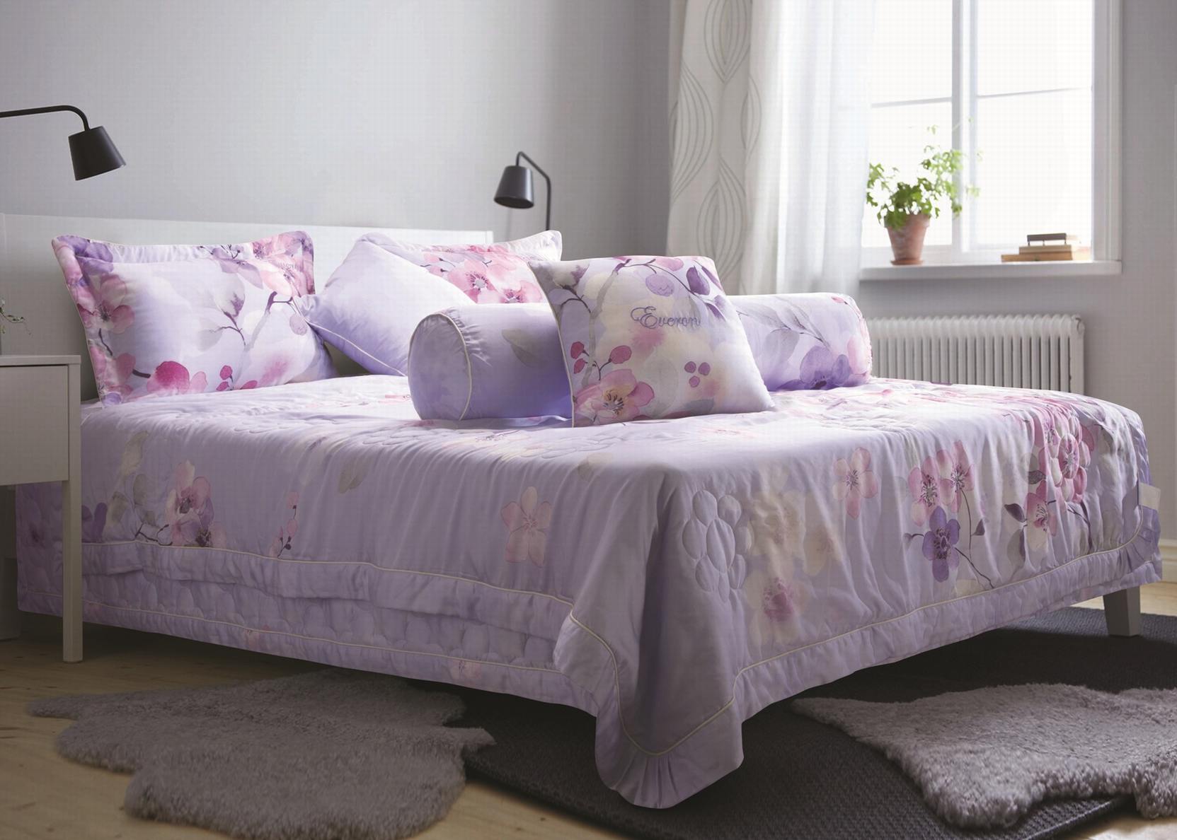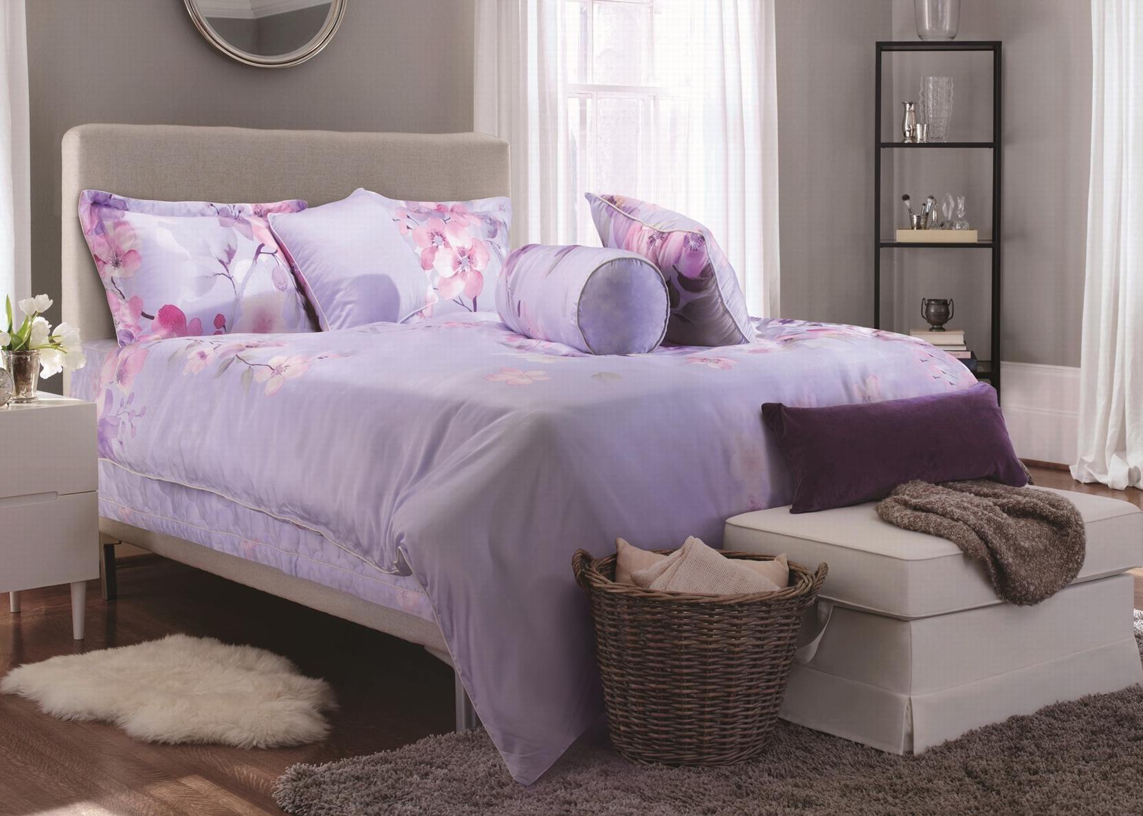 Lấy cảm hứng từ màu sắc của viên Ngọc bích tím (purple jade). Bộ chăn ga là sự kết hợp của những cánh hoa đào uyển chuyển trên nền tím ngọc bích. Màu tím không quá gắt, tinh tế, là sự lựa chọn không tồi cho những bạn trẻ yêu thích sự nhẹ nhàng.