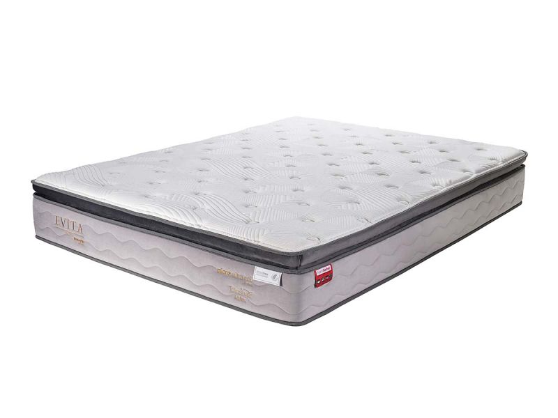 Nệm Lò Xo Dunlopillo Evita - NEW với hệ thống lò xo túi siêu nhỏ độc quyền Micro Ultra Coil Pocket chắc chắn, giảm sự truyền động tối đa. Đồng thời lớp đệm lót với được làm từ chất liệt cao su nhập khẩu Talasilver cùng tấm Pillow Top được thiết kế sang trong, đẹp mắt.