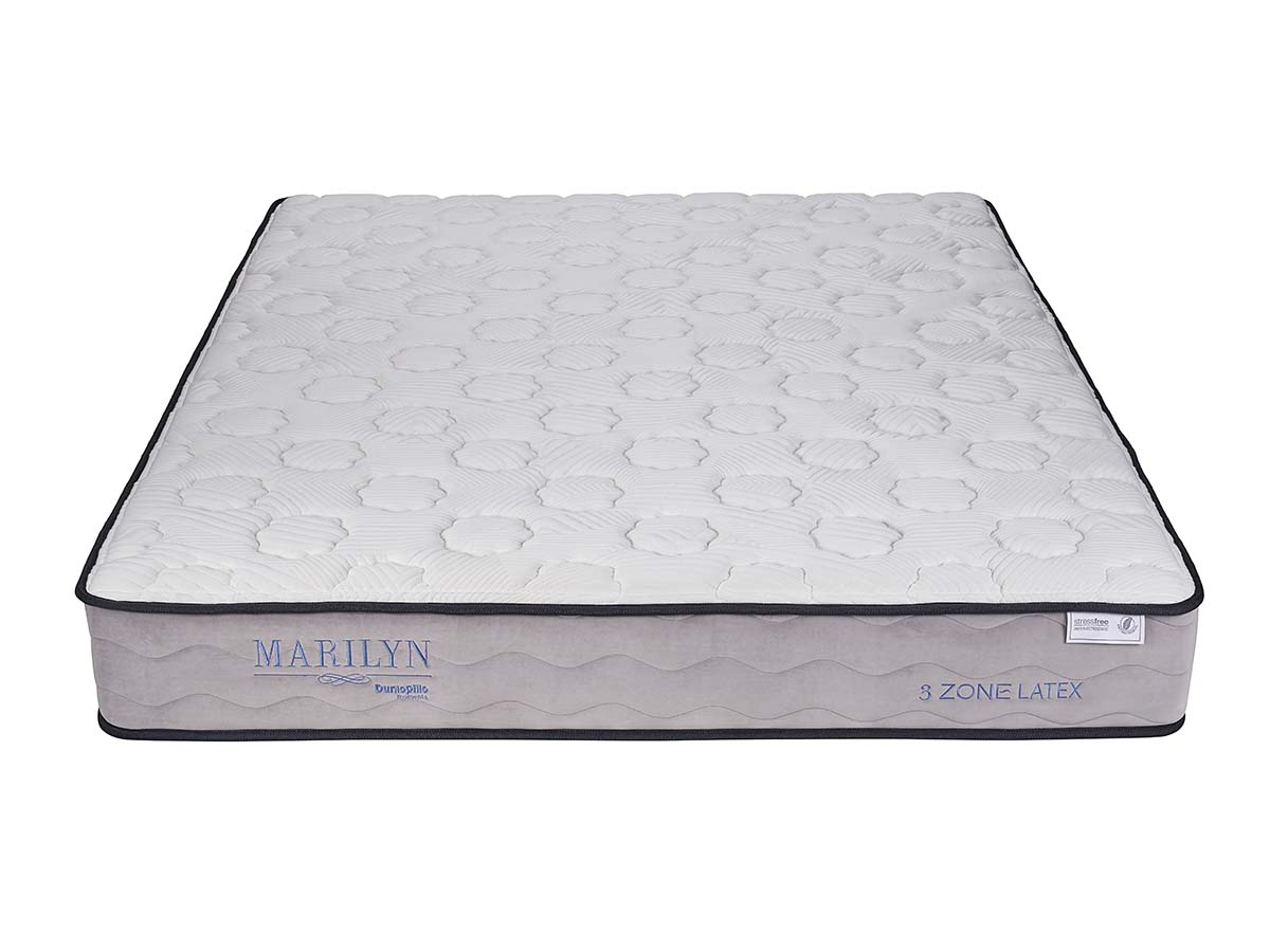 Nệm Dunlopillo Marilyn cao 25cm. Thiết kế đặc biệt với 3 vùng khác nhau kết hợp cùng cao su cung cấp hỗ trợ tốt hơn, tạo sự cân bằng cho trọng lượng cơ thể và giữ cho cột sống luôn ở tư thế thẳng nhất.