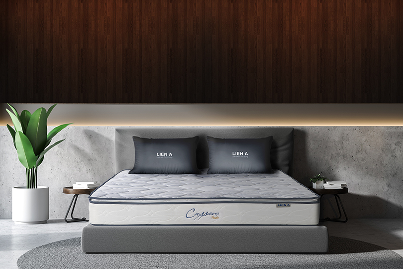 Nệm lò xo Cassaro Plush với chất liệu xơ dừa tự nhiên giúp thoát ẩm và lưu thông khí hiệu quả. Lớp PU-HR pillow top bổ sung bên trên cho cảm giác êm ái và thư giãn tuyệt vời